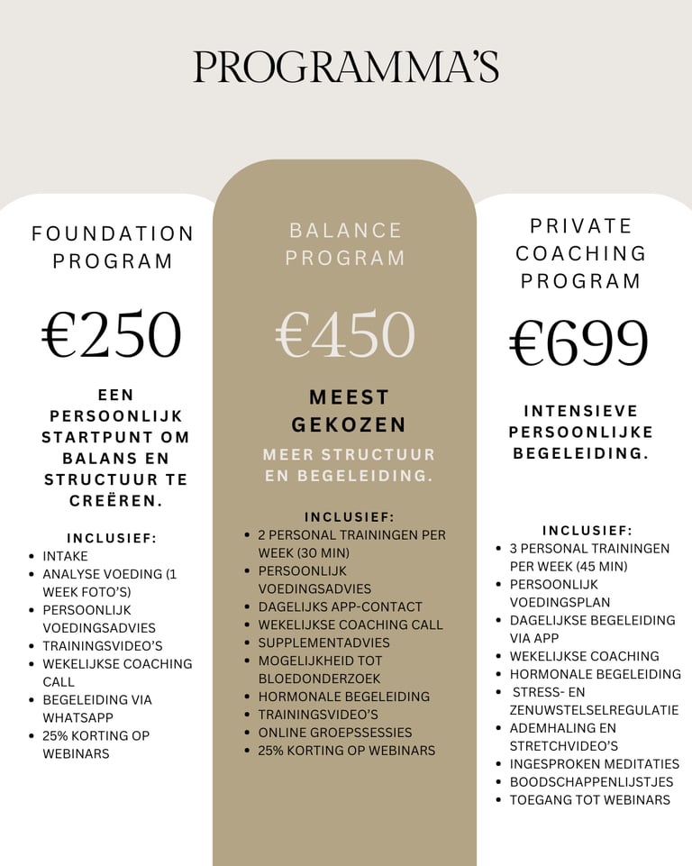 Training, voeding en begeleiding afgestemd op het lichaam van vrouwen.